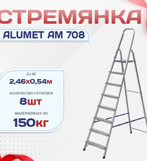 Стремянка Alumet AM 705 предназначена для ремонтно-эксплуатационных, монтажных работ на высоте до 4-х метров на производстве и в быту.