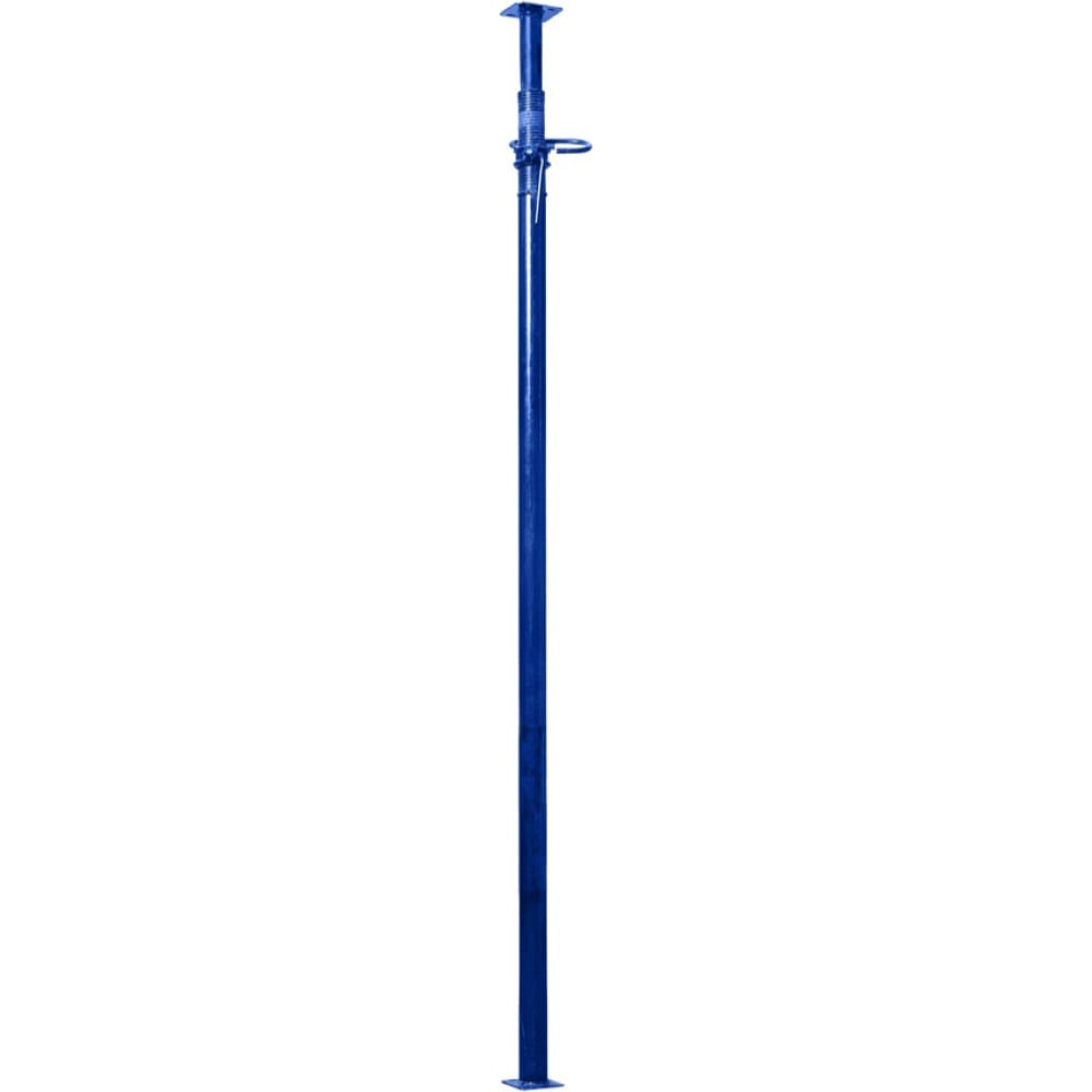 Телескопическая стойка для опалубки 4,5 м (домкрат) предназначена для поддержания горизонтальных щитов опалубки при возведении монолитных потолочных перекрытий, а также в качестве временной опоры при строительстве и ремонте. Изготовлена из двух стальных труб 60 и 48 мм с толщиной стенки металла 2,5 и 2 мм соответственно. Нижняя (более широкая) имеет опорную площадку для устойчивости. На нее накручивается опорная гайка и вставляется телескопическая труба меньшего диаметра с прорезями по всей длине. Фиксация нужной длины стойки выполняется крепёжной серьгой через прорези в насадке и отверстия в верхней трубе с опорой на гайку. Минимальная высота данной модели стойки – 2,96 метра, максимальная – 4,5 метра. Чем выше вы выдвигаете стойку, тем меньше на нее должна быть нагрузка. Точные значения для каждого положения высоты указаны в паспорте изделия. Для того, чтобы собрать опалубочную конструкцию перекрытия, кроме телескопической стойки-домкрата вам понадобятся: - ламинированная фанера (не менее 15 мм толщиной) - двутавровая деревянная балка - тренога (для обеспечения устойчивости стойки) - унивилка (для размещения двутавровой балки и фанеры) Порядок монтажа телескопических стоек на строительной площадке 1. На площадке, подготовленной в соответствии с ППР объекта, устанавливается тренога. При этом поворотные ноги располагаются так, чтобы обеспечить ее максимальную устойчивость с учетом конфигурации опорной поверхности. 2. Поднимают фиксатор треноги до упора, устанавливают телескопическую стойку и опускают фиксатор, который, скользя по наклонной трубе, зажимает стойку. 3. После установки телескопических стоек в треноги, все стойки под опалубку выравниваются по высоте и производится монтаж щитов опалубки перекрытий в следующем порядке: - продольная (нижняя) балка укладывается в унивилку; - поперечная балка или брус (верхняя) укладывается на продольную; - с помощью гайки стойки по уровню производится точная юстировка опалубочного стола; - после точной юстировки производится монтаж фанеры.