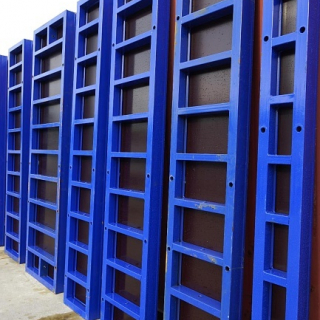 Стальные щиты для возведения прямых монолитных стен универсальны, монтируются как в горизонтальном, так и в вертикальном положениях. Быстро и удобно соединяются замками. Панели или просто щиты транспортируются с помощью захвата монтажного строительного с использованием строп. Противоположные ответные щиты стен крепятся с помощью винтовых стяжек с гайками.