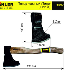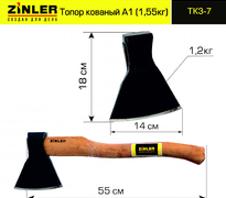 Топор ZINLER кованый 1,2 кг в сборе, А1 (общий вес 1,55 кг)